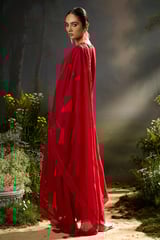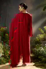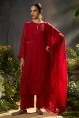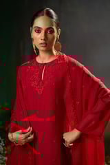 Salsa Red Organza Silk Embroidered Kurta Set with Dupatta