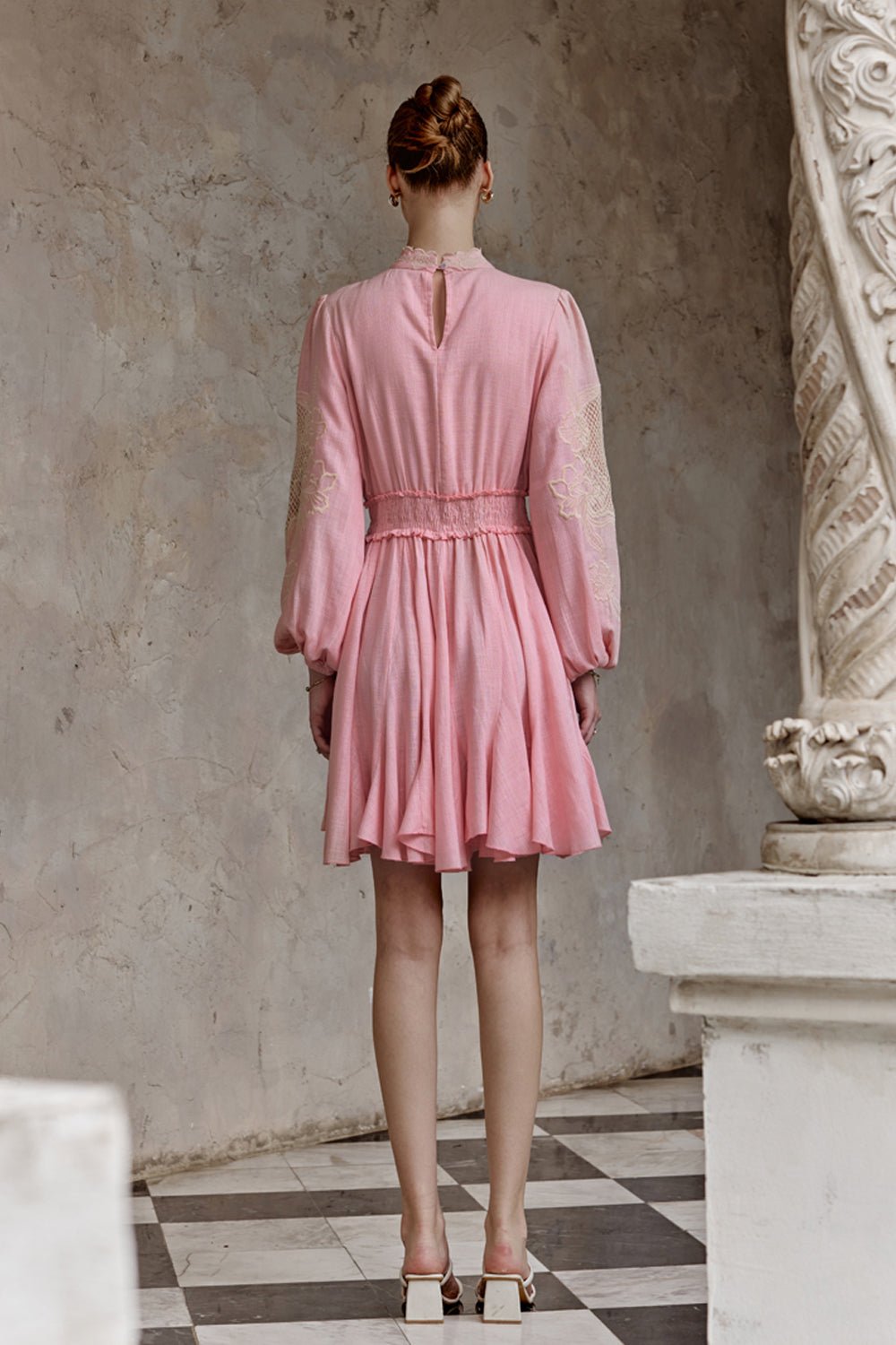 Pastel Hue Delicate Cutwork Embroidered Flowers Dress