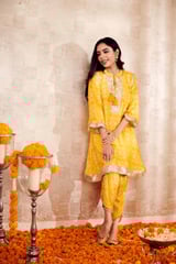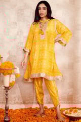 Cotton Silk Printed Geometric Round Embroidered Kurta And Pant Set