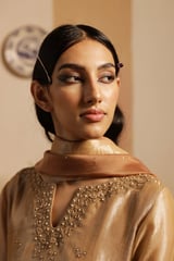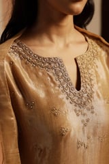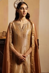 Rugby Tan Tissue Silk Kurta Set with Zari Embroidery