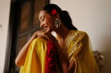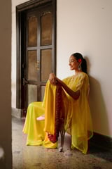 Yellow Organza Embroidered Cape and Sharara Co-ord Set