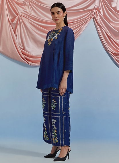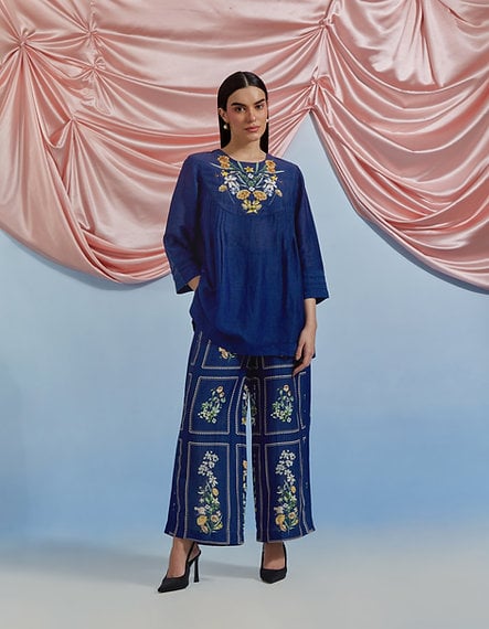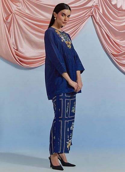 Bouquet Pleated Top & Pants Set
