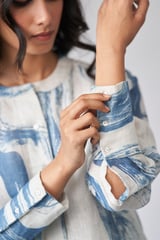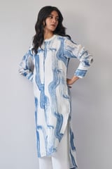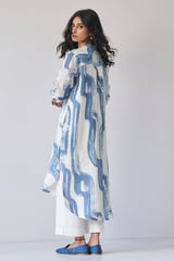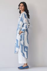 Marshmallow and Blue Printed Straight Linen Kurta Set