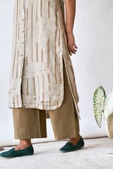 Beige Linen Printed Straight Kurta Set with Pants