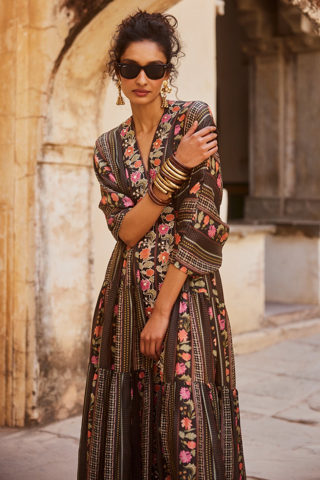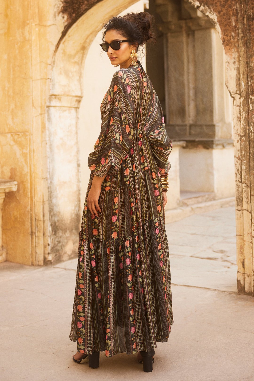 Black Floral Print Kaftan Set