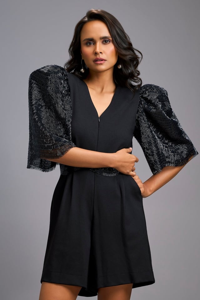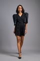 Black V-Neck Playsuit with Shimmer Belt