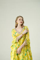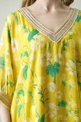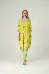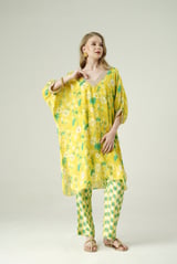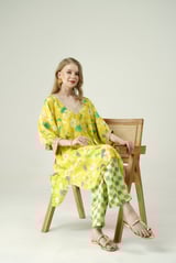 Lemon Blossom Bird & Floral Kaftan With Abstract Print Pants