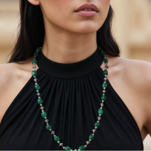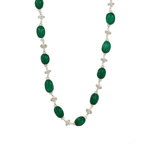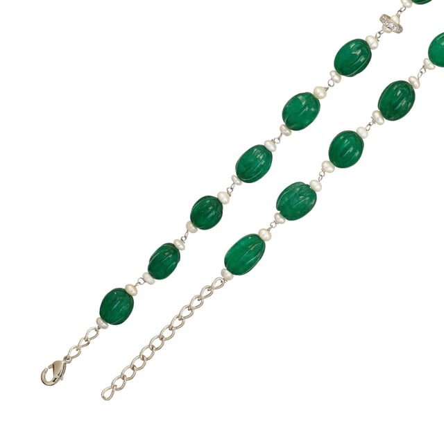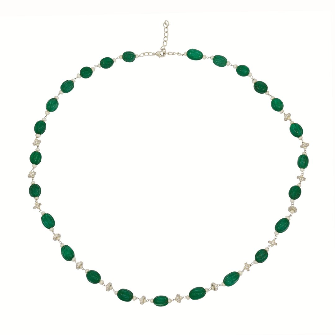 Carved Green and Small Pearl Chain