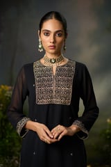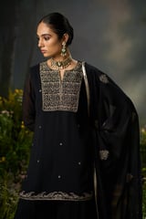 Kohl Black Embroidered Georgette Sharara Kurta Set