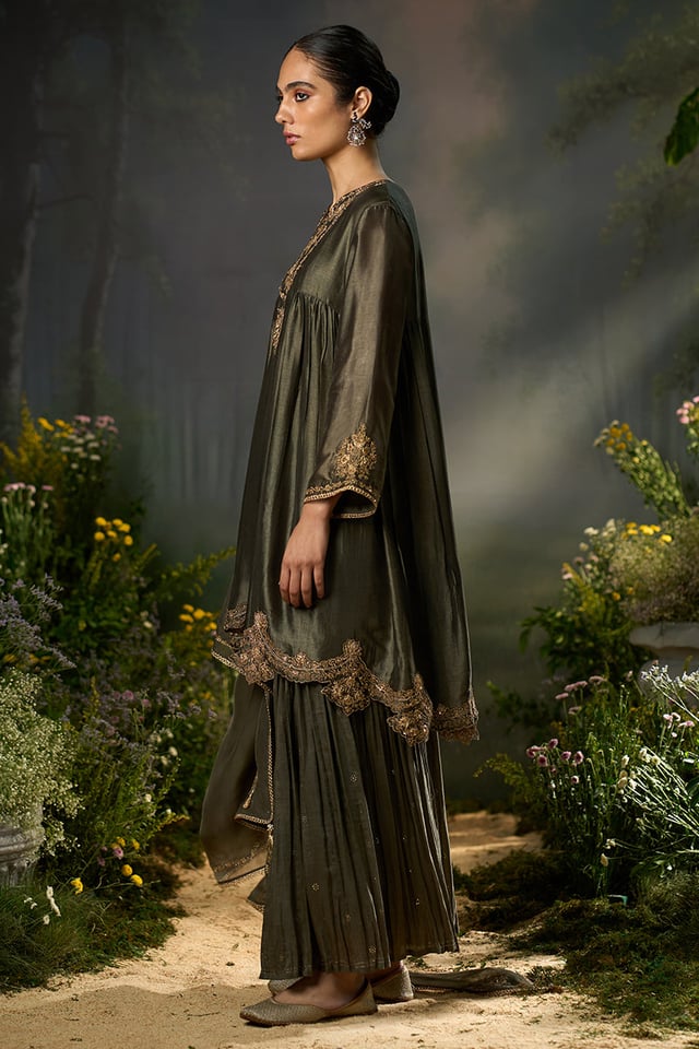Tarmac Raw-Silk Festive Sharara Kurta Set