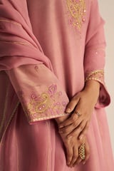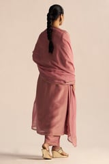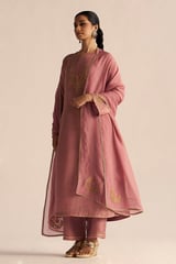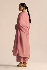 Pink Tissue Silk Kurta Set with Embroidered Neckline
