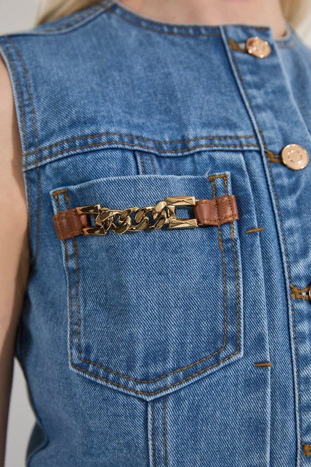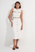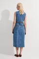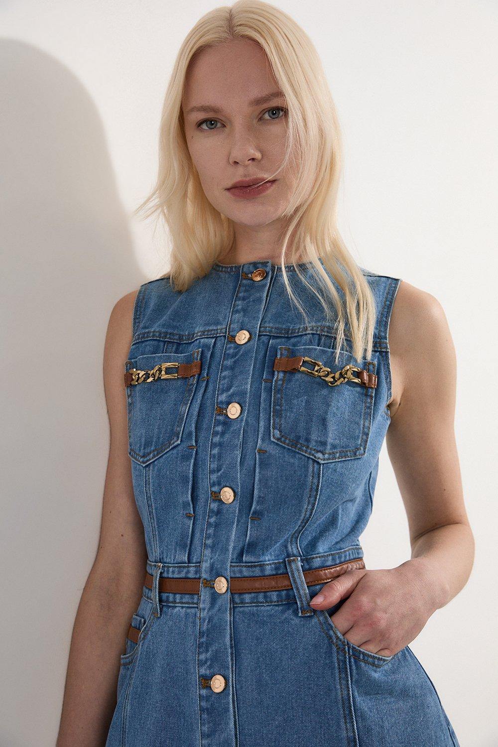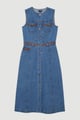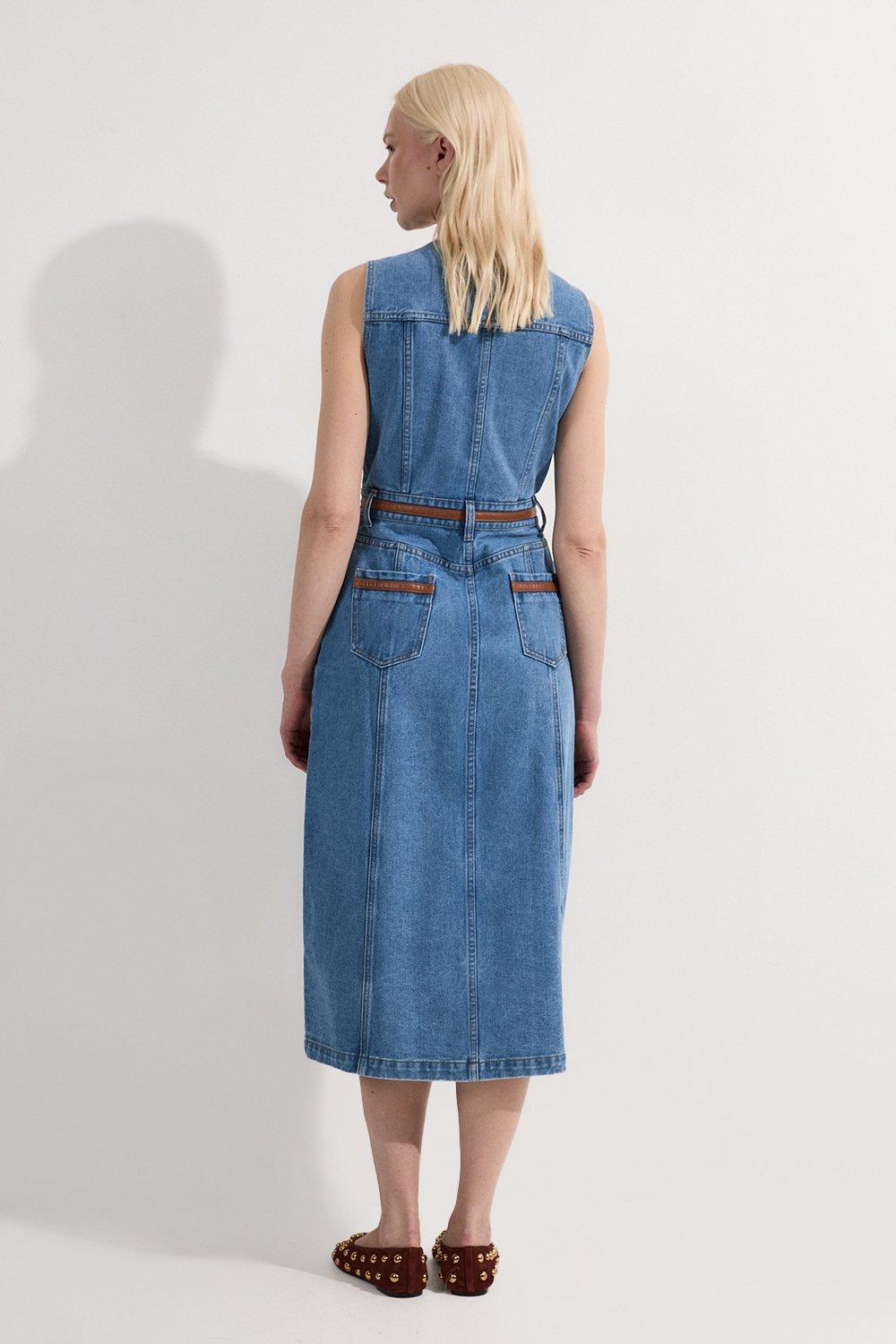 Denim & Faux Leather Tipping Sleeveless Midi Dress