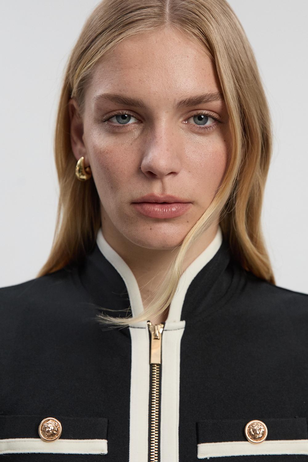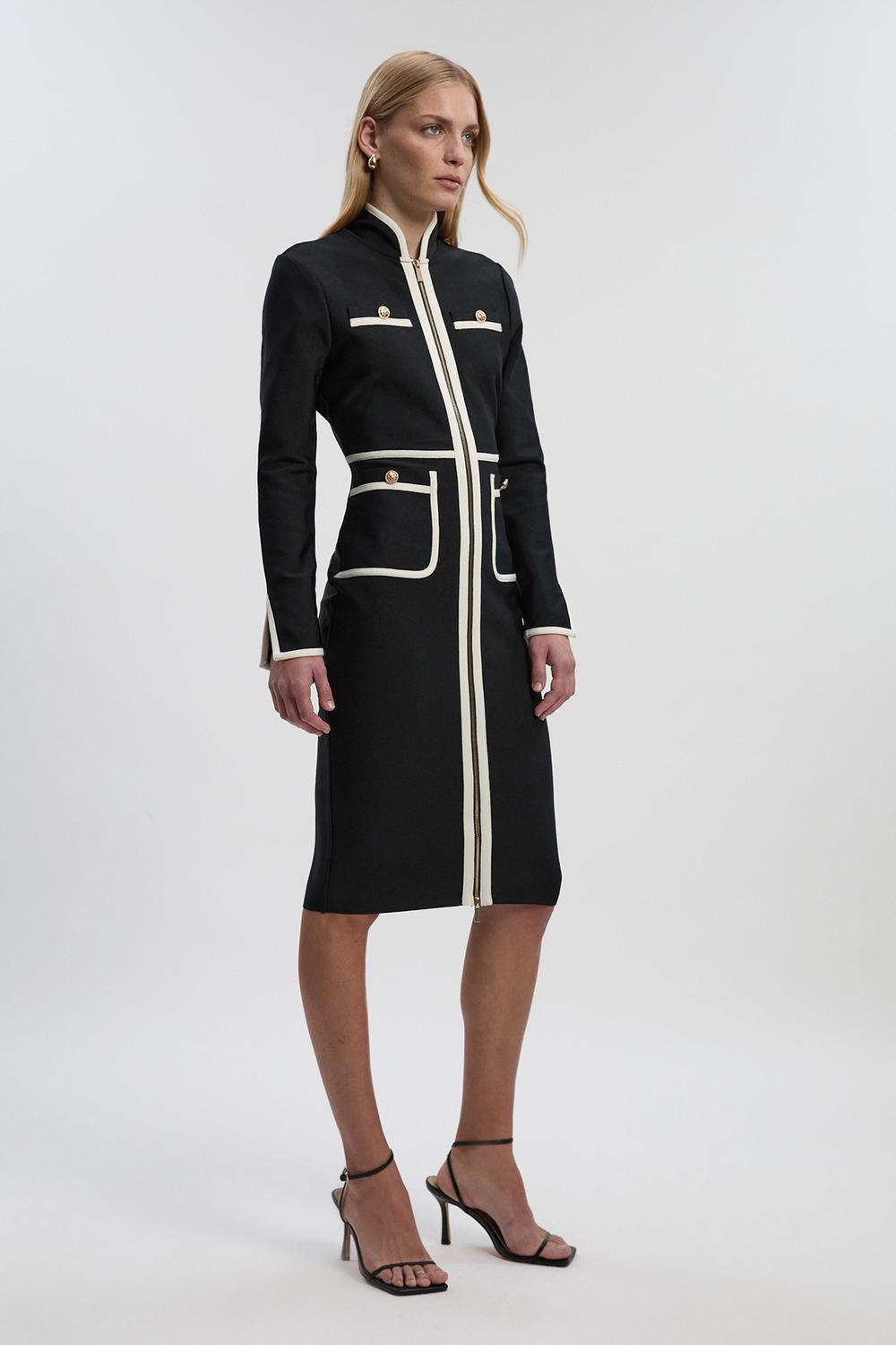 Figure Form Bandage Knit Piping Detail Military Dress