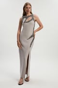 Embellished Figure Form Bandage Sleeveless Knit Maxi Dress