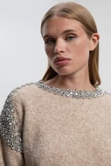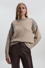 Oatmeal Embellished Trim Cosy Knit Jumper