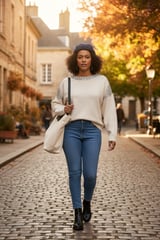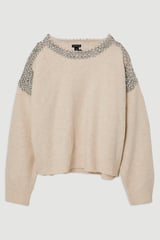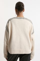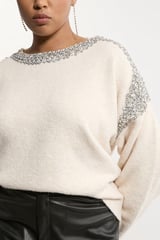Ivory Crystal-Embellished Round Neck Pullover Sweater