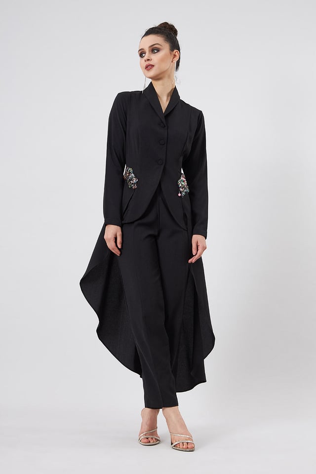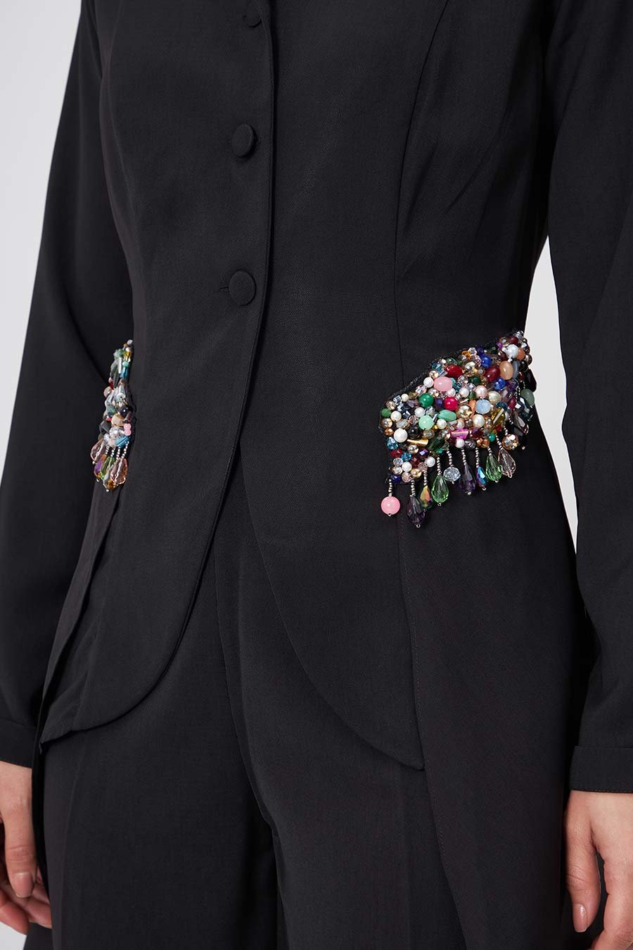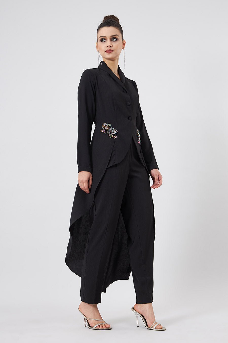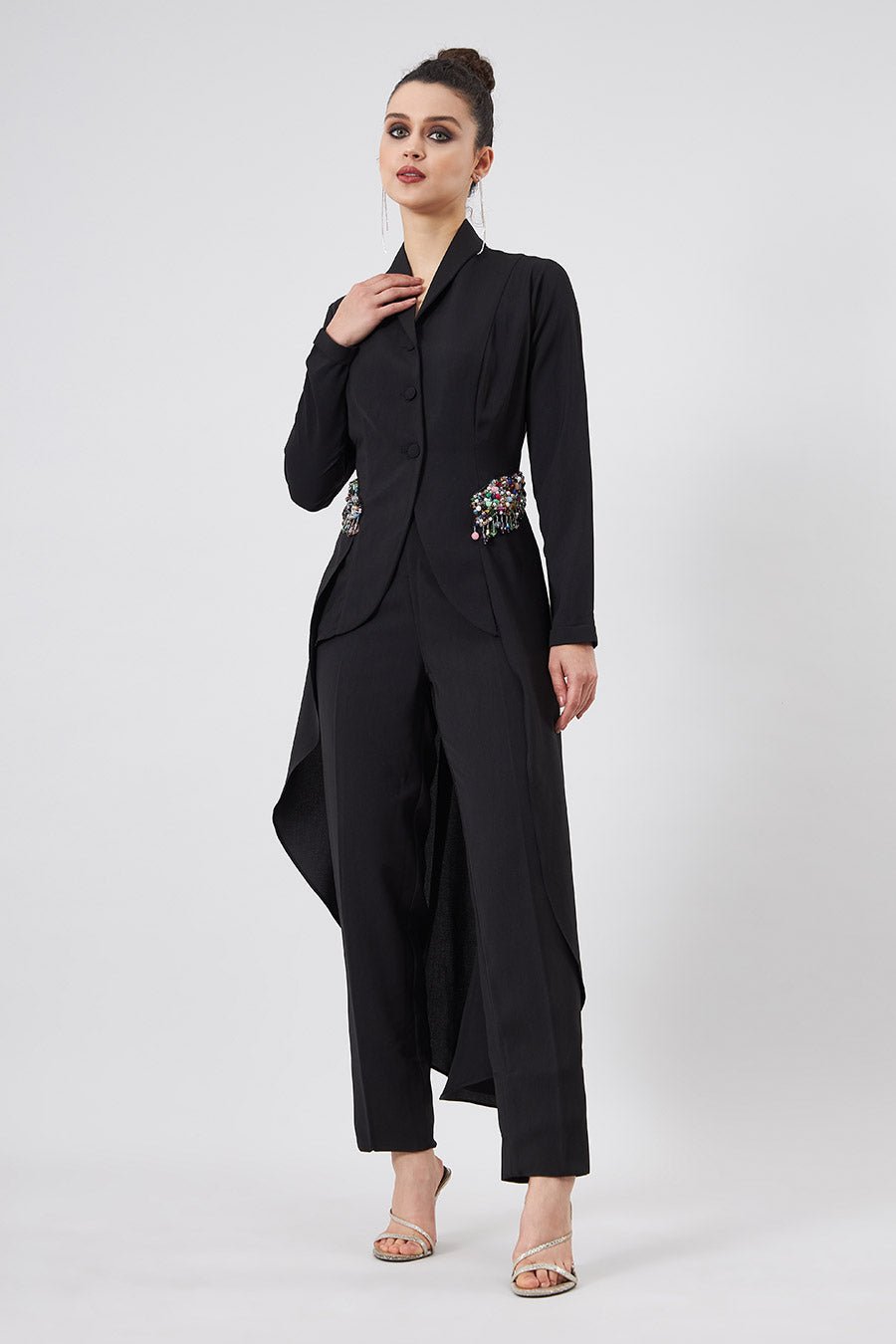 Black Crystal Blazer Tunic & Pant Co-Ord Set