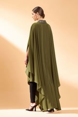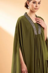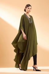 Olive Metallic Embroidery Kaftan Tunic