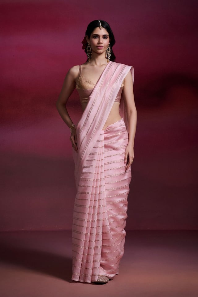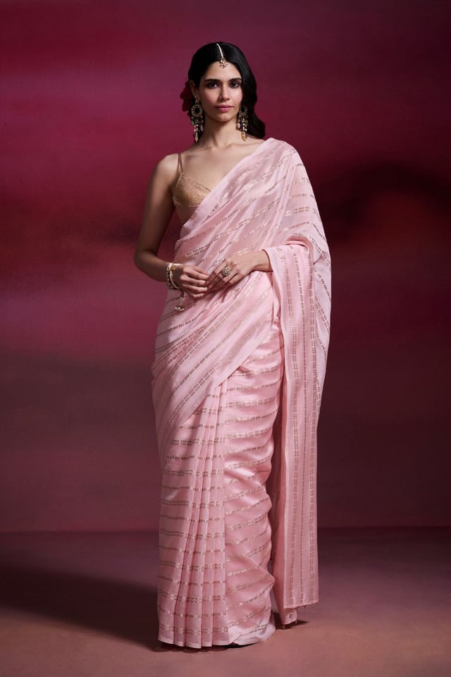 Baby Pink Banarasi Silk Cotton Brocade Saree