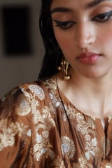 Argan Oil Brown Zari Woven Silk Salwar Suit Set