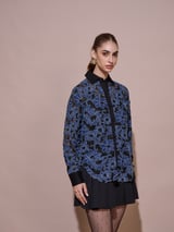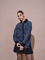 Blue Floral Jacquard Button-Down Shirt