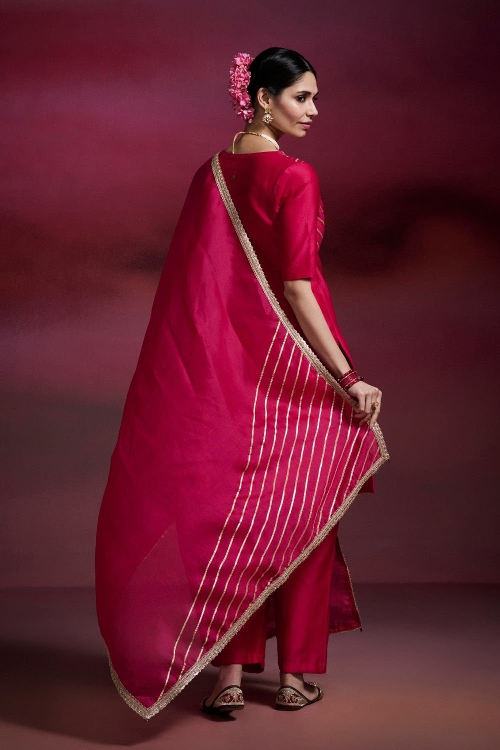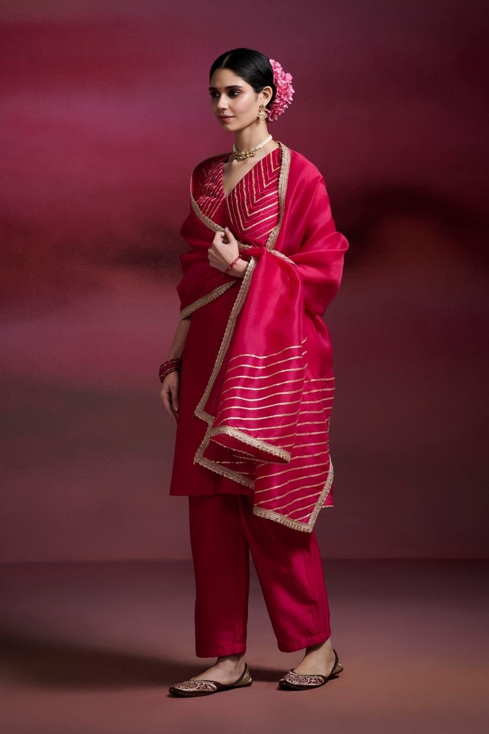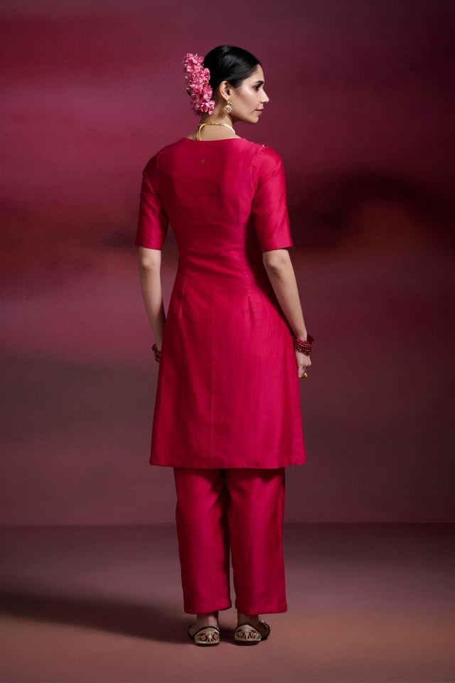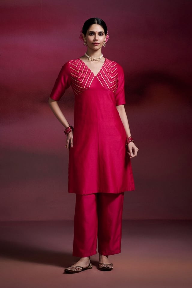 Shantipriya Rani Pink Chanderi Silk Straight Kurta Set