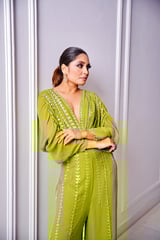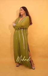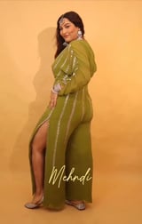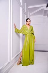 Parrot Green Embellished Kimono Sleeve Jumpsuit