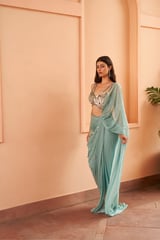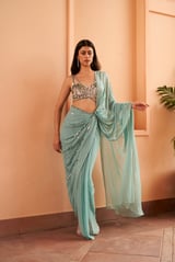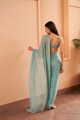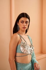 May Blue Pre-Draped Saree Set with Sequin Blouse
