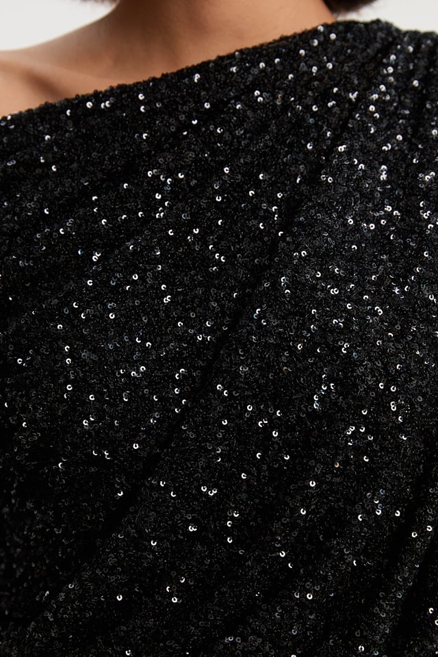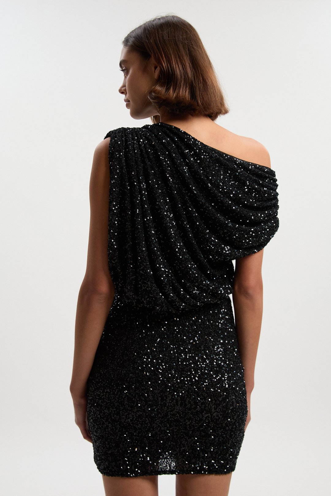 Draped One Shoulder Jersey Stretch Sequin Mini Dress