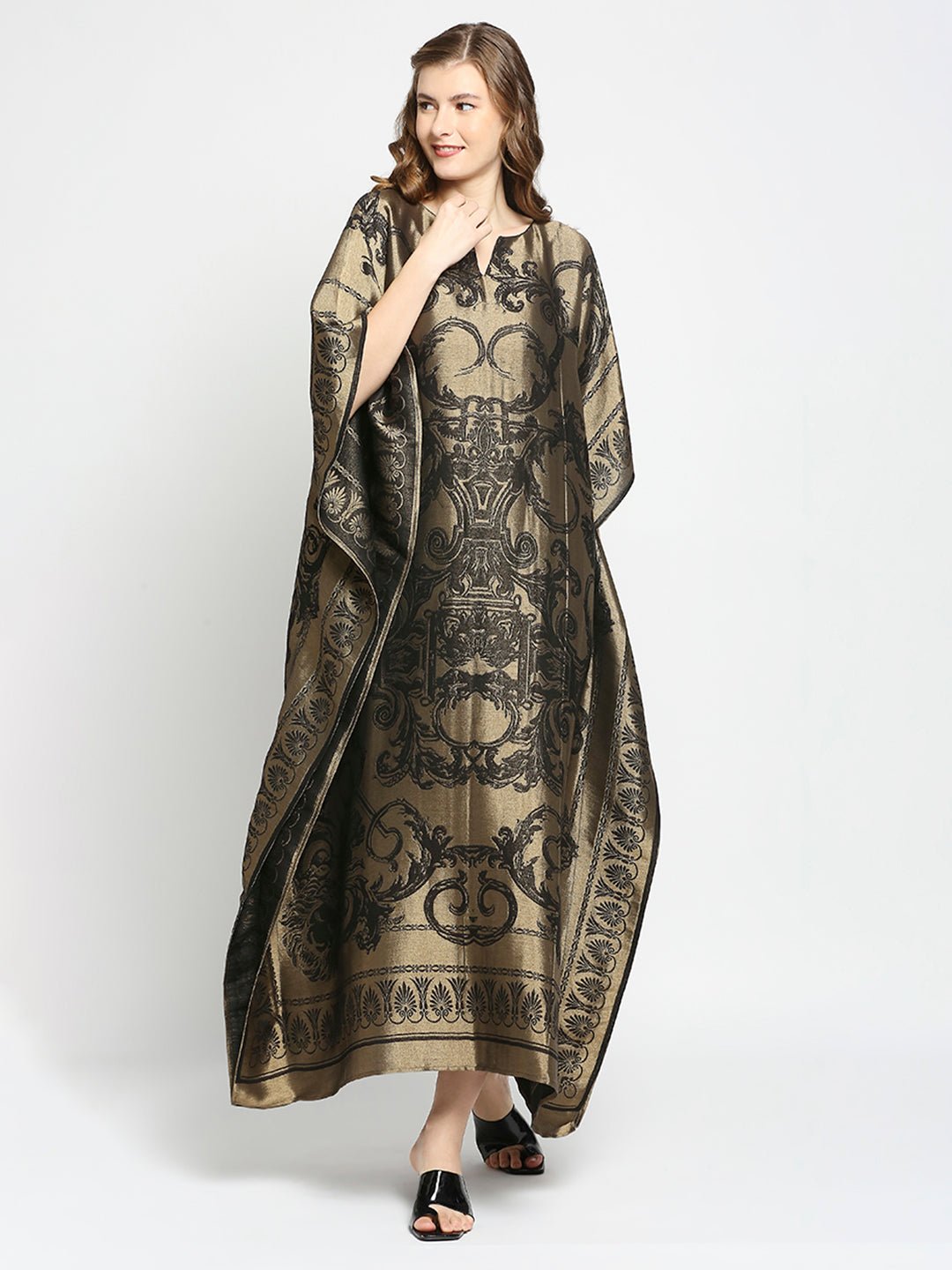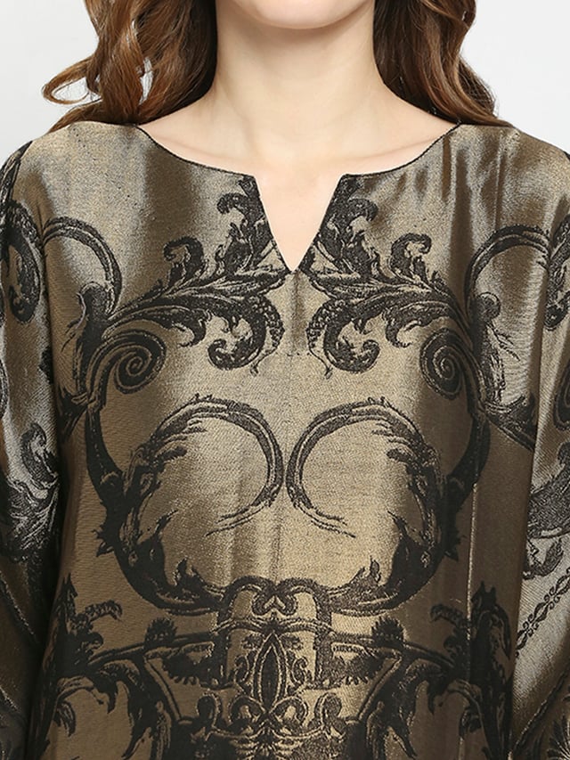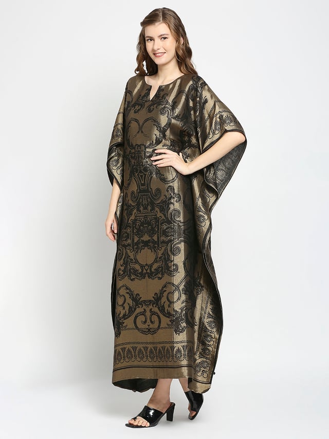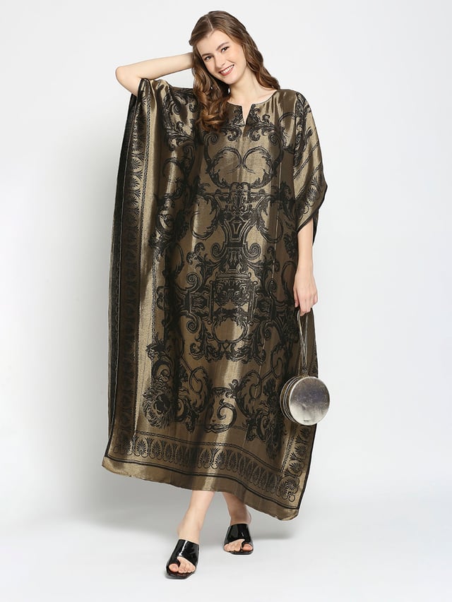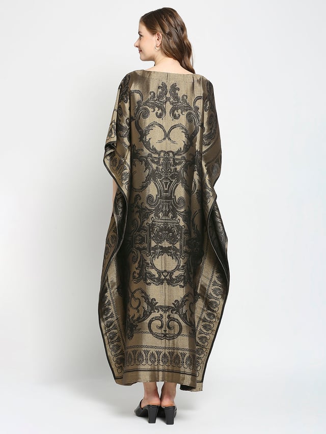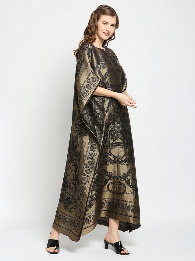 Black & Gold Motif Designed Long Brocade Kaftan