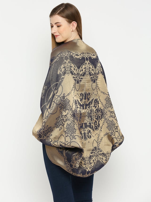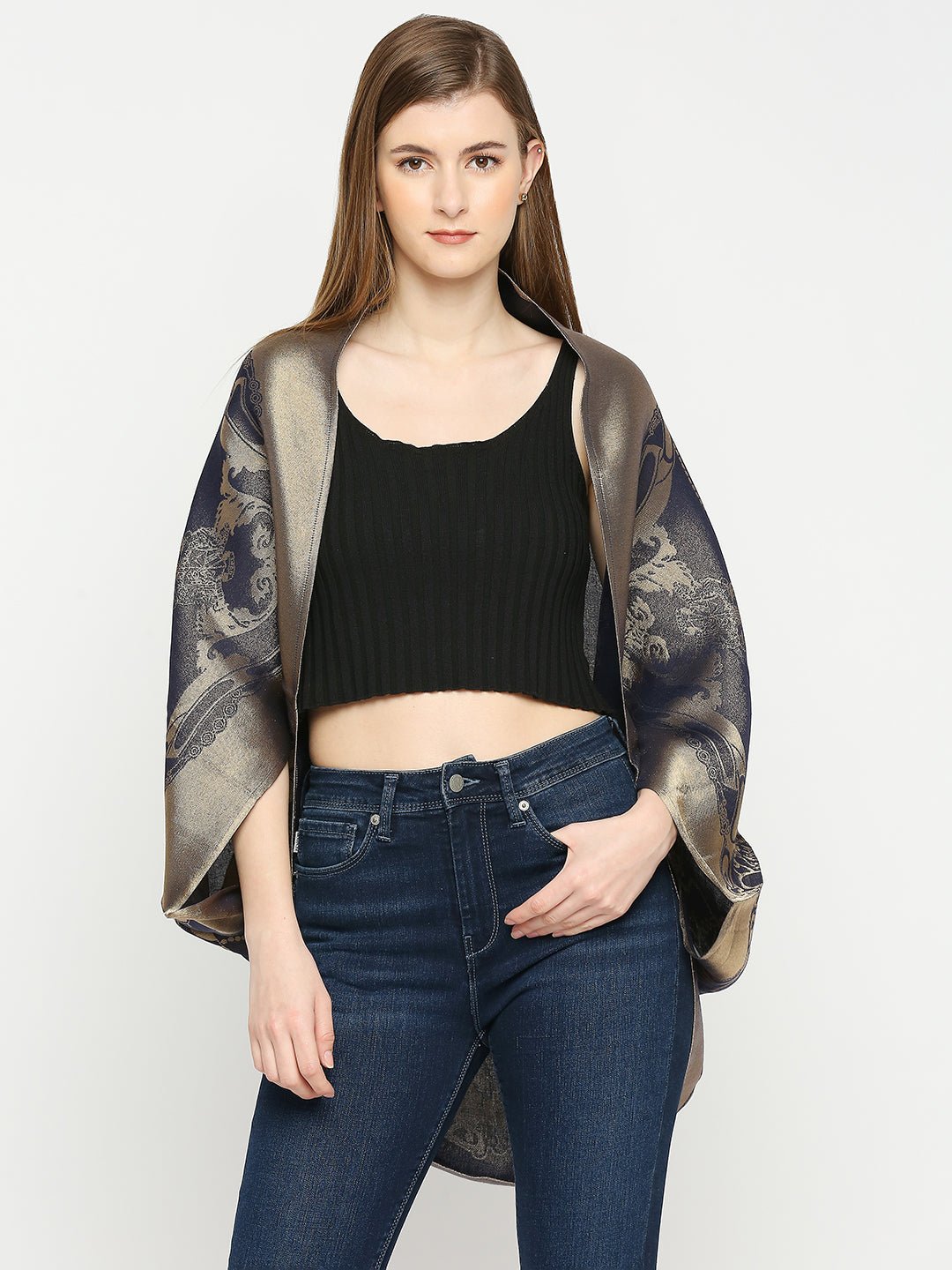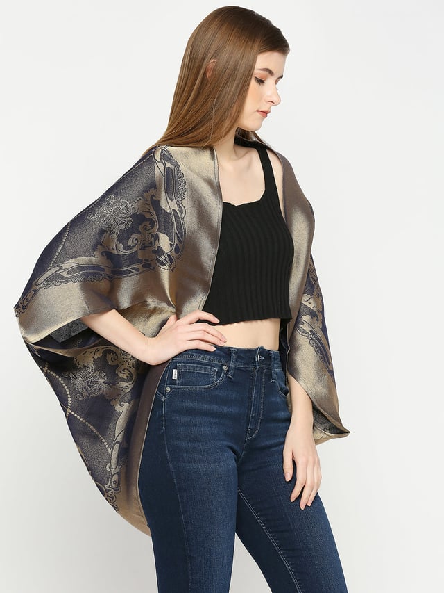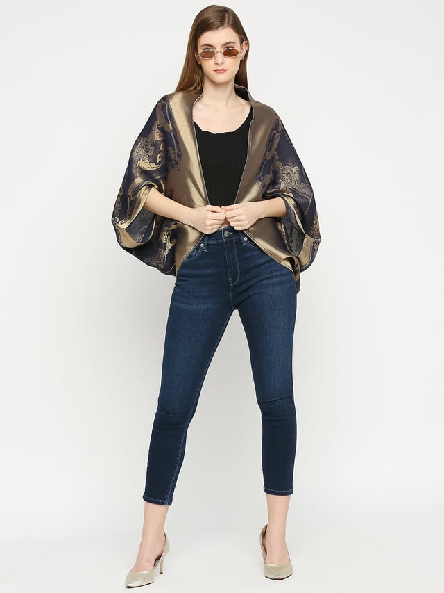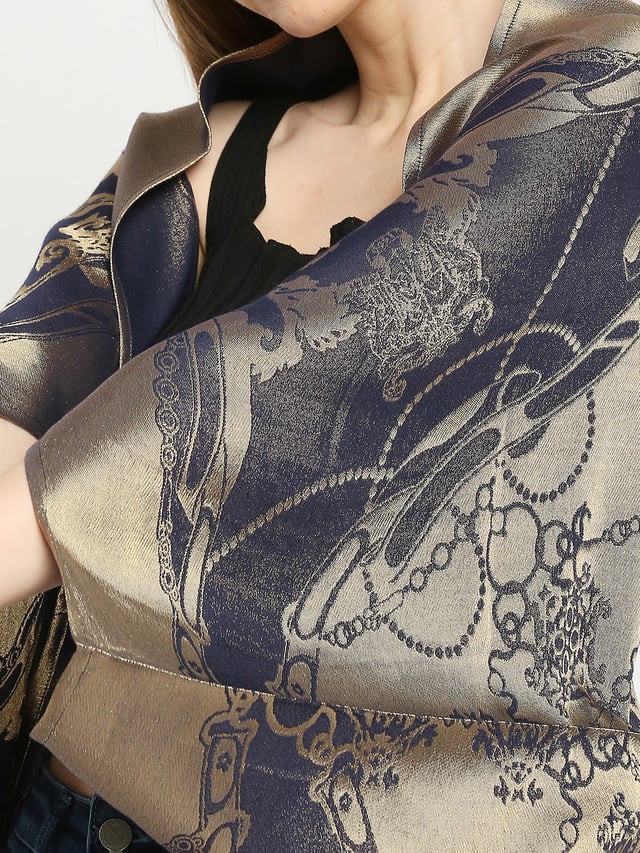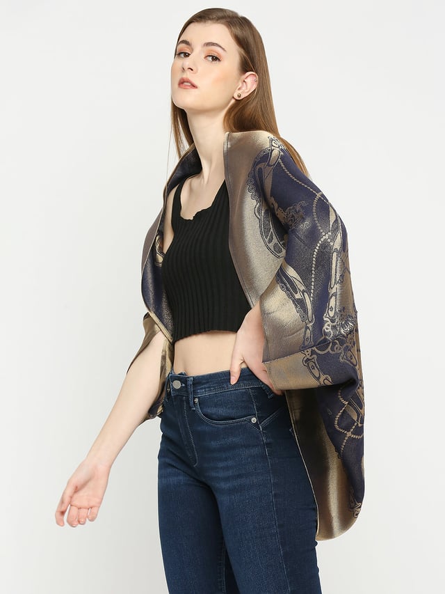 French Rope & Chains Patterned Navy Blue Cocoon Shrug