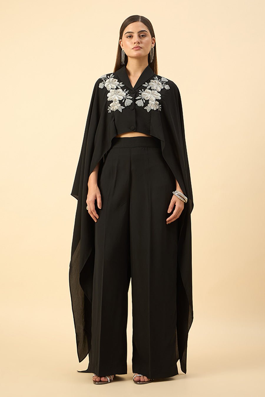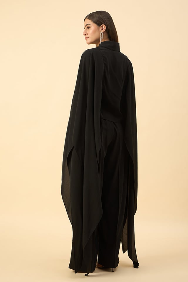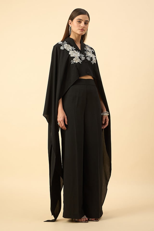 Black Embroidered Crop Top & Pant Set