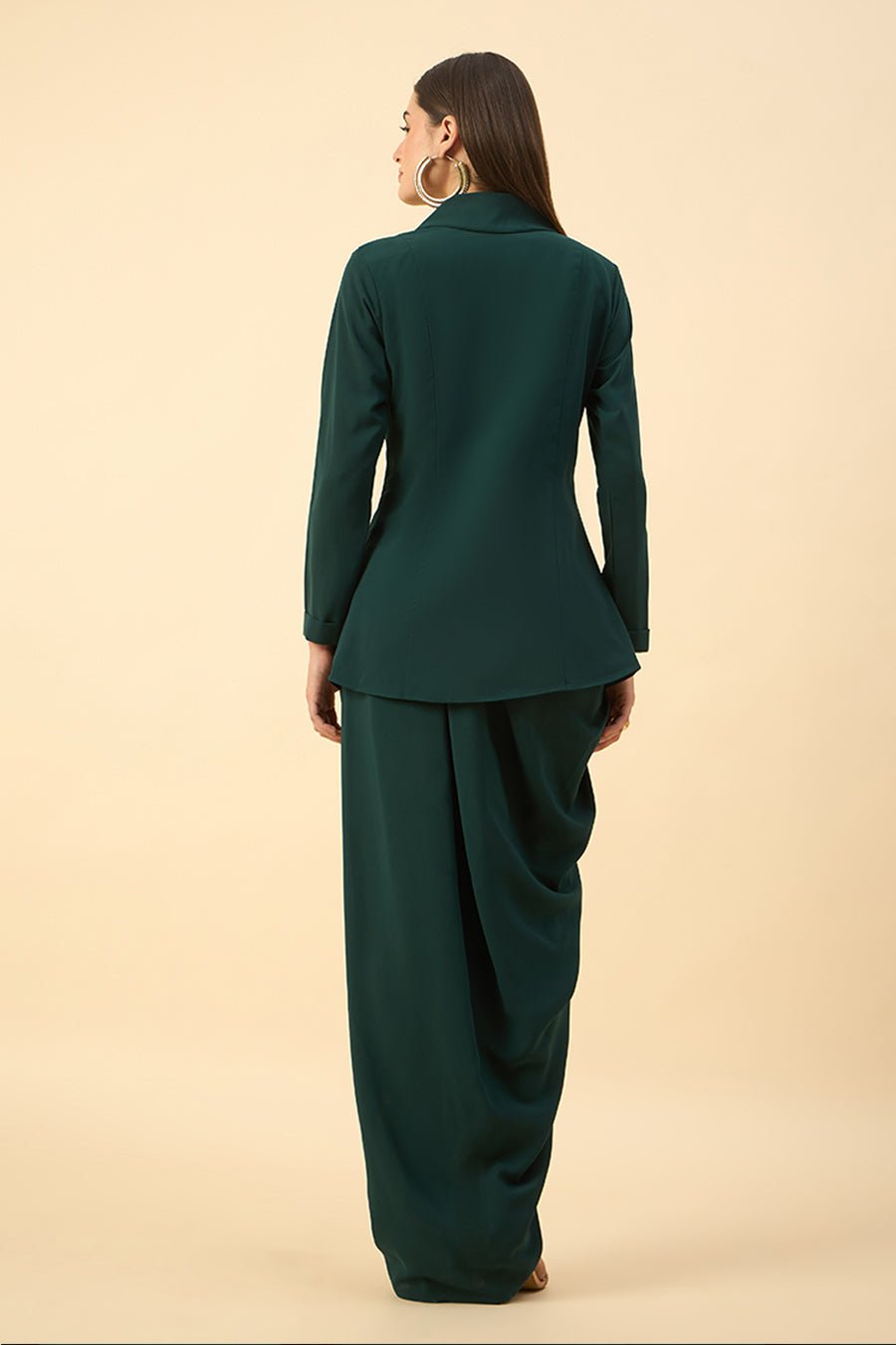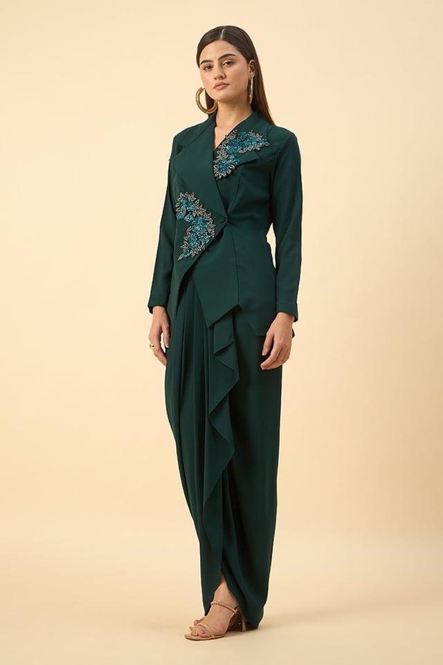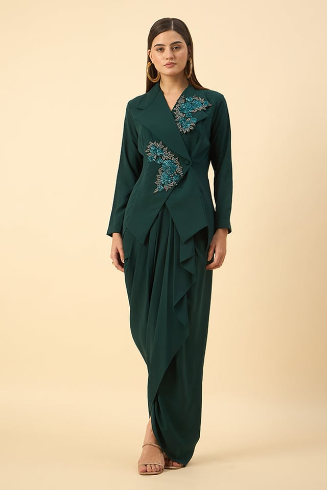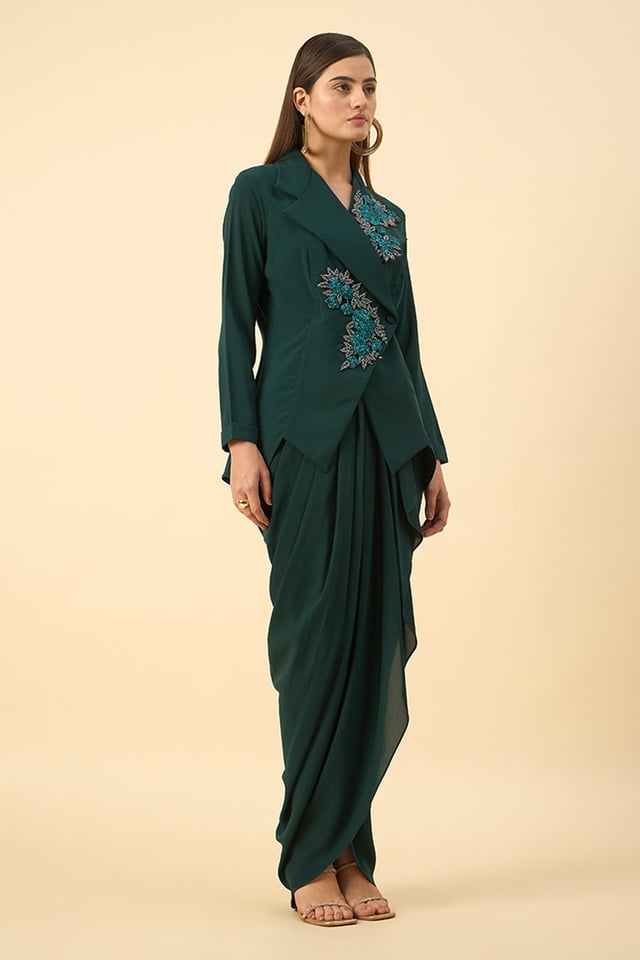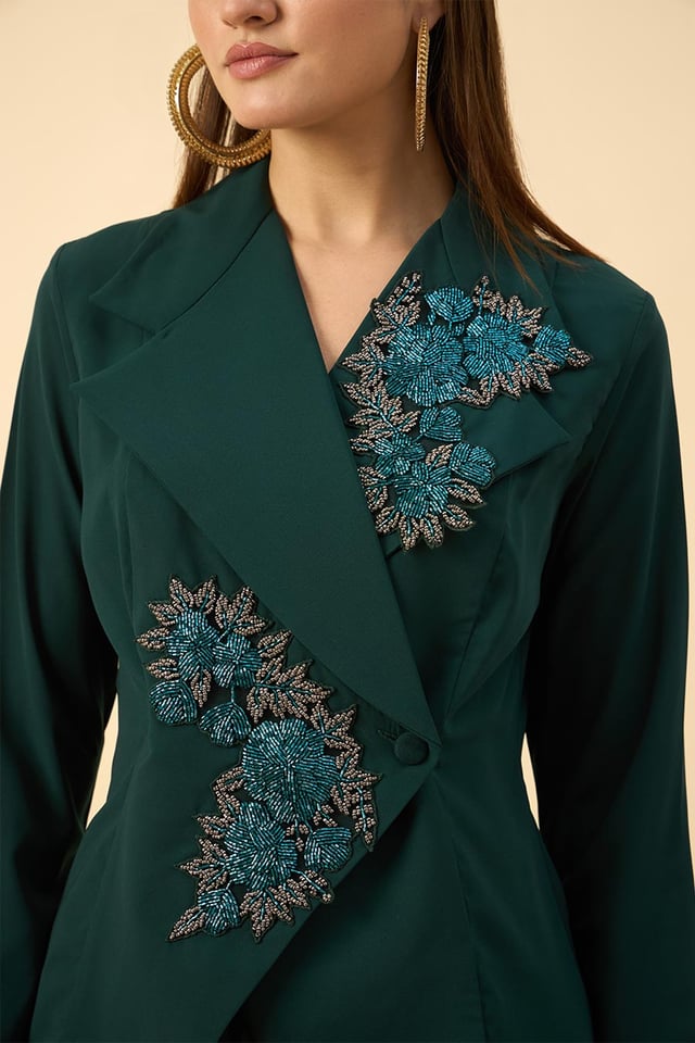 Green Floral Embroidered Blazer & Skirt Set