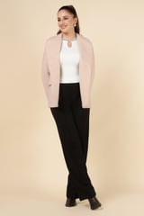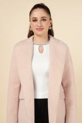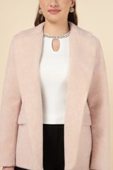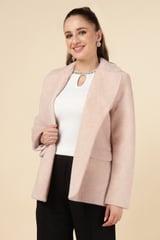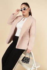 Light Pink Tailored Open-Front Blazer with Patch Pockets
