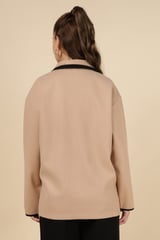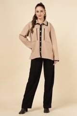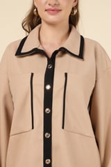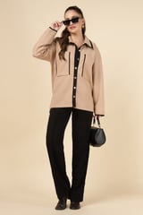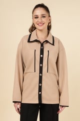 Camel Colorblock Button-Front Shirt with Contrast Trim