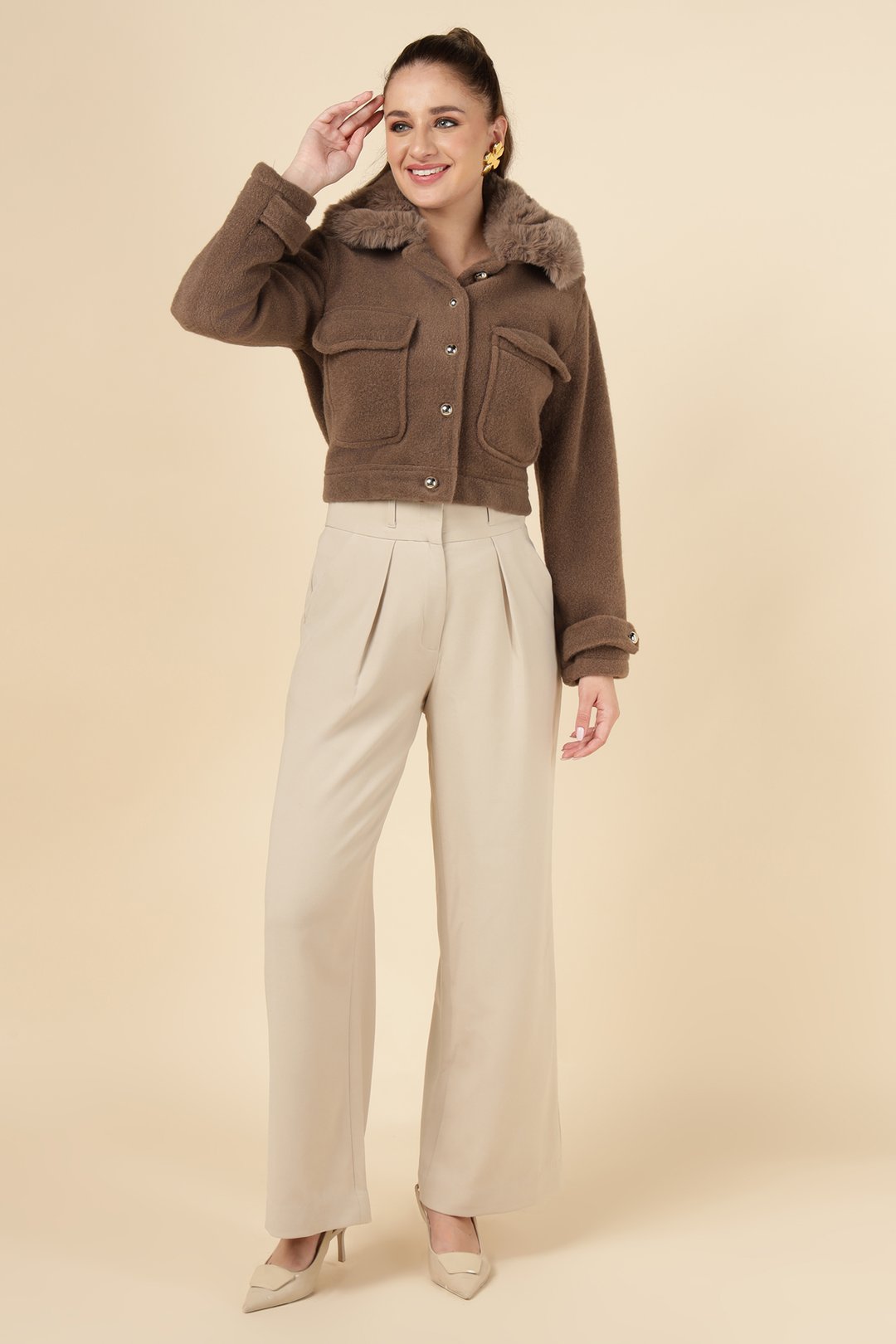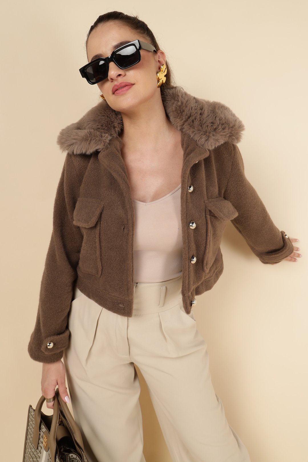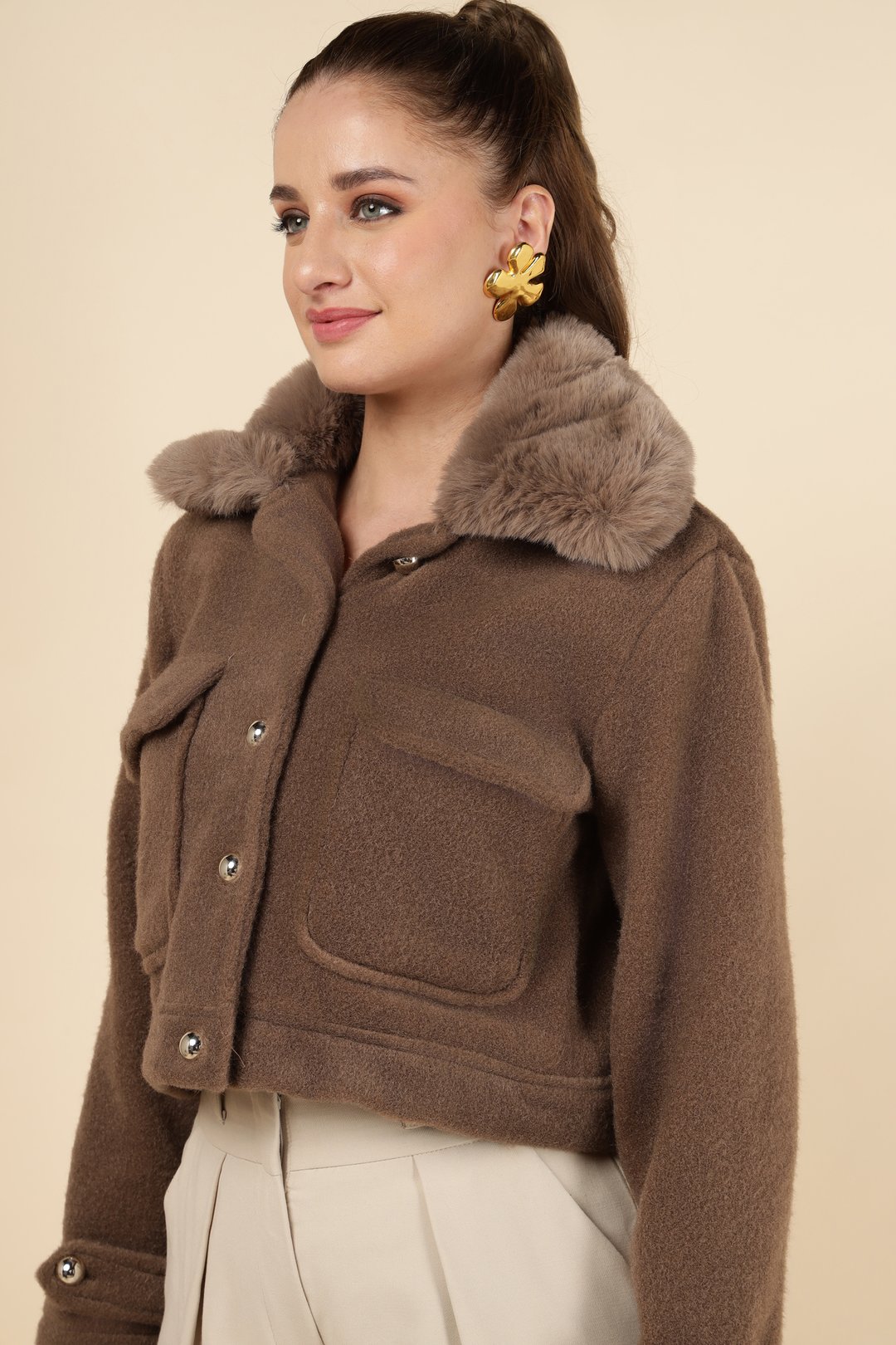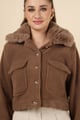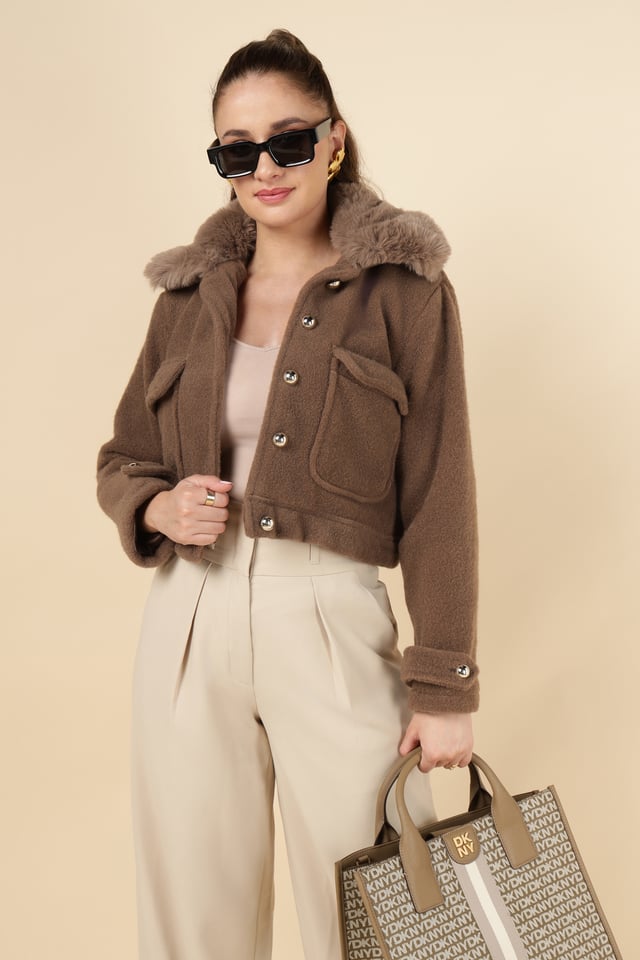 Cropped Faux Fur Collar Jacket