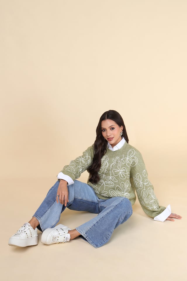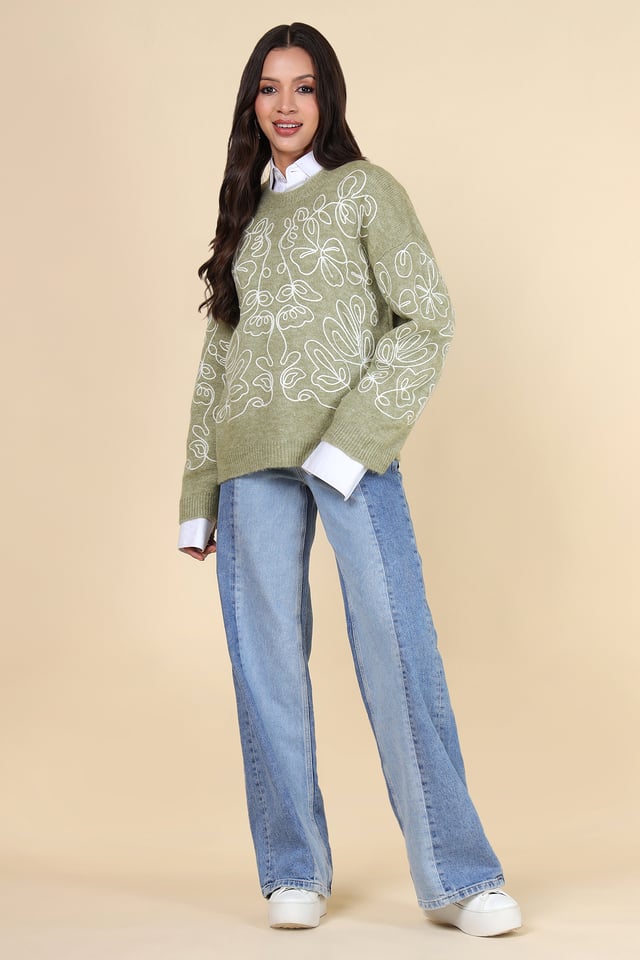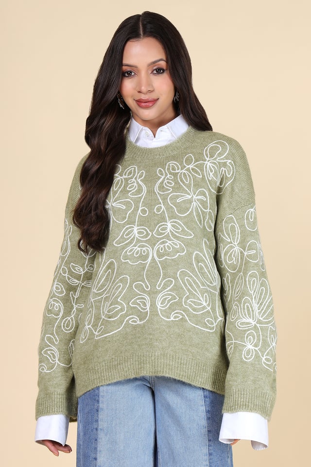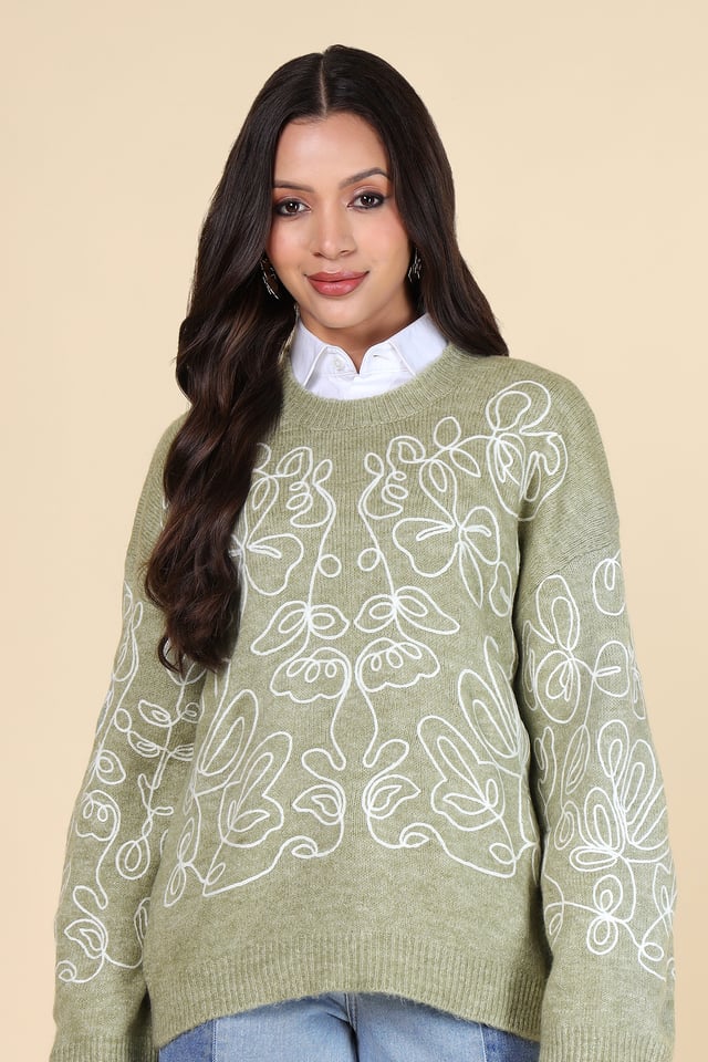 Abstract Embroidered Sweater