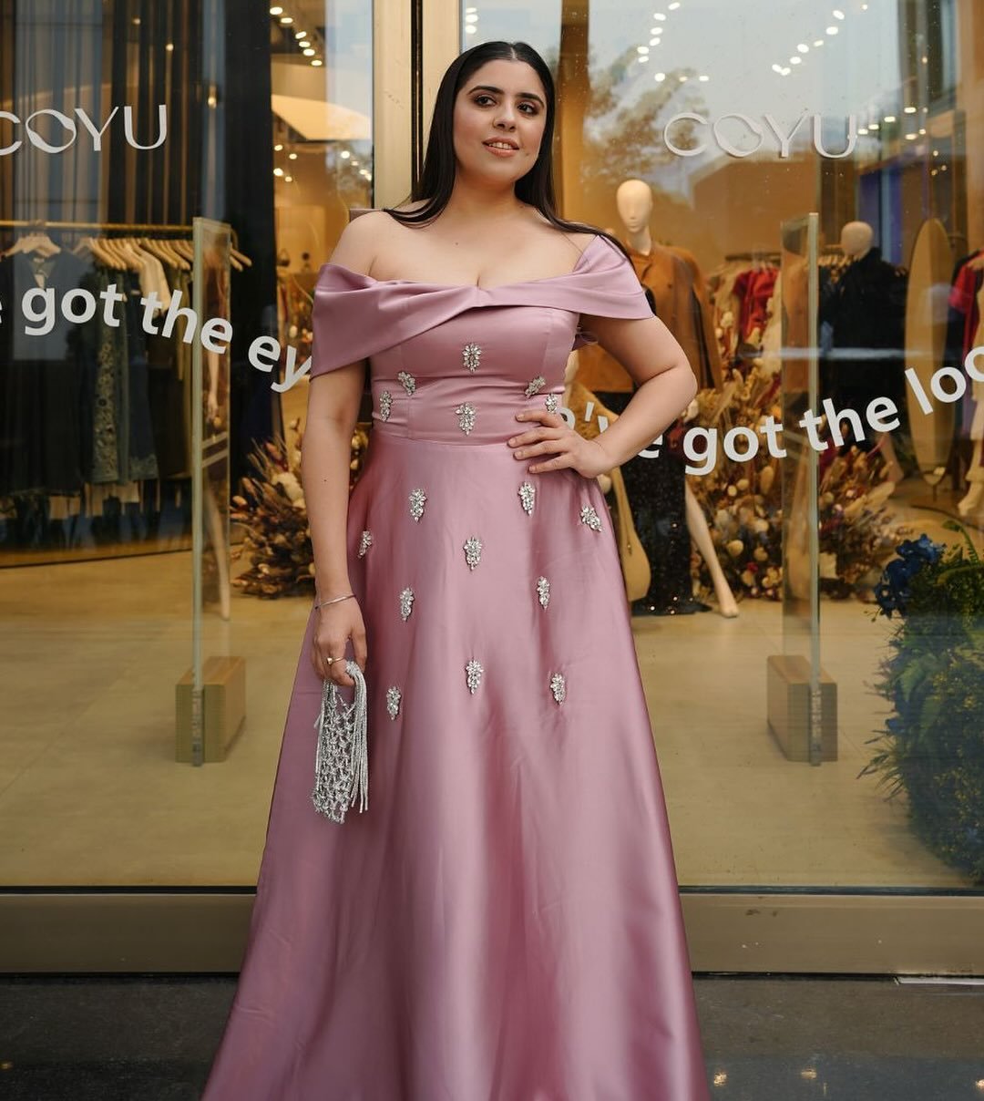 Off-Shoulder Embellished Evening Gown
