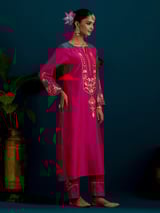 Notched Neck Long Yoke Kurta And Pant Set