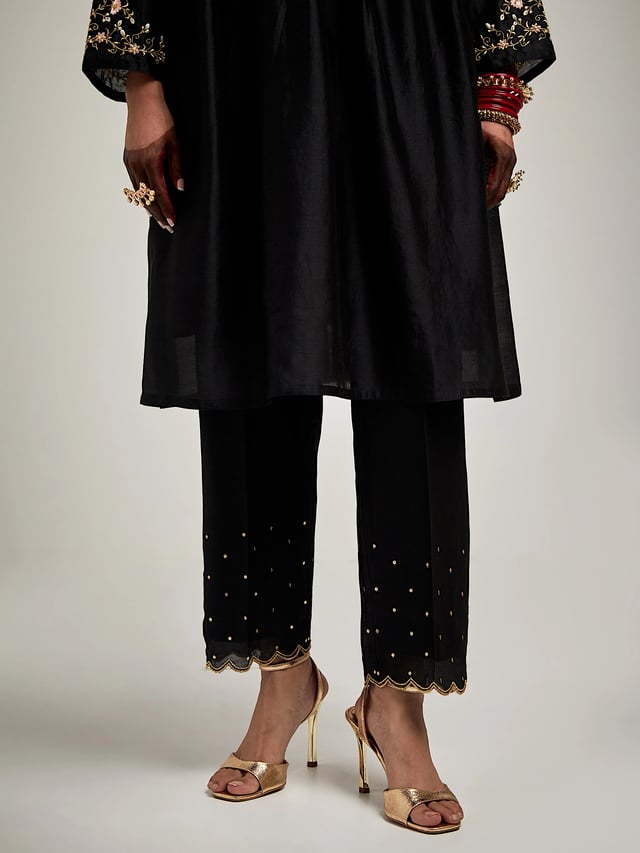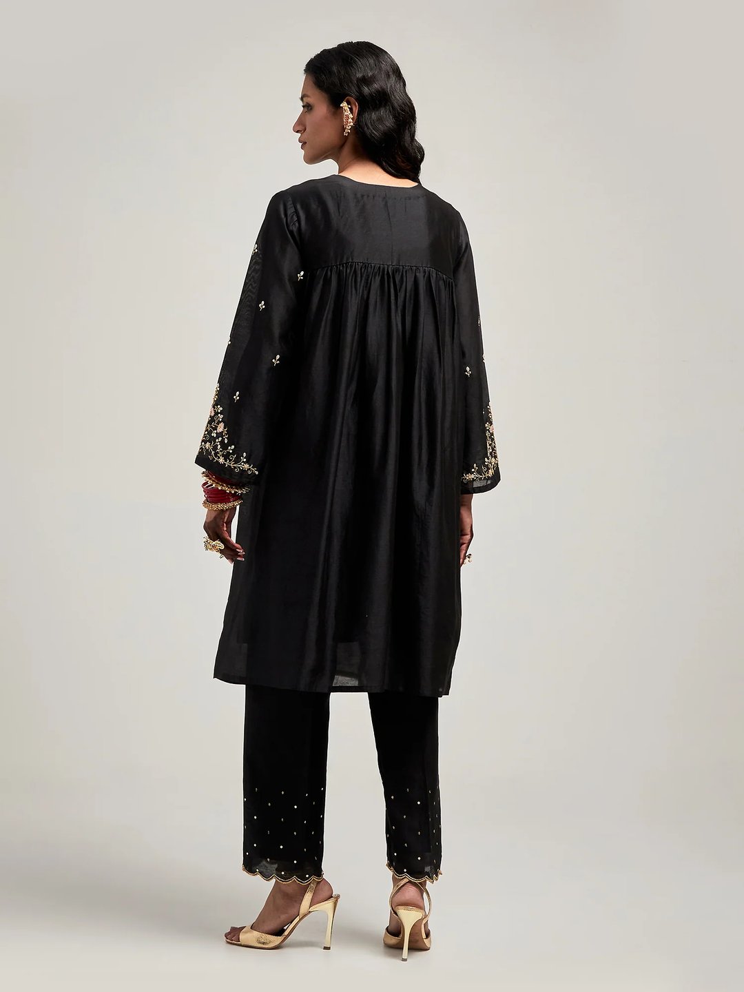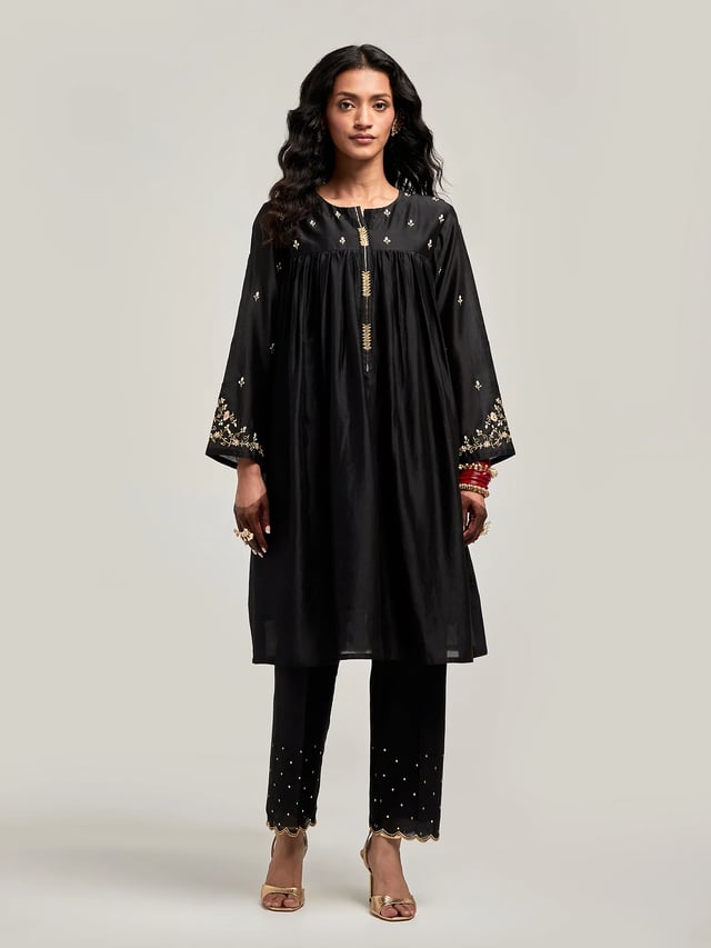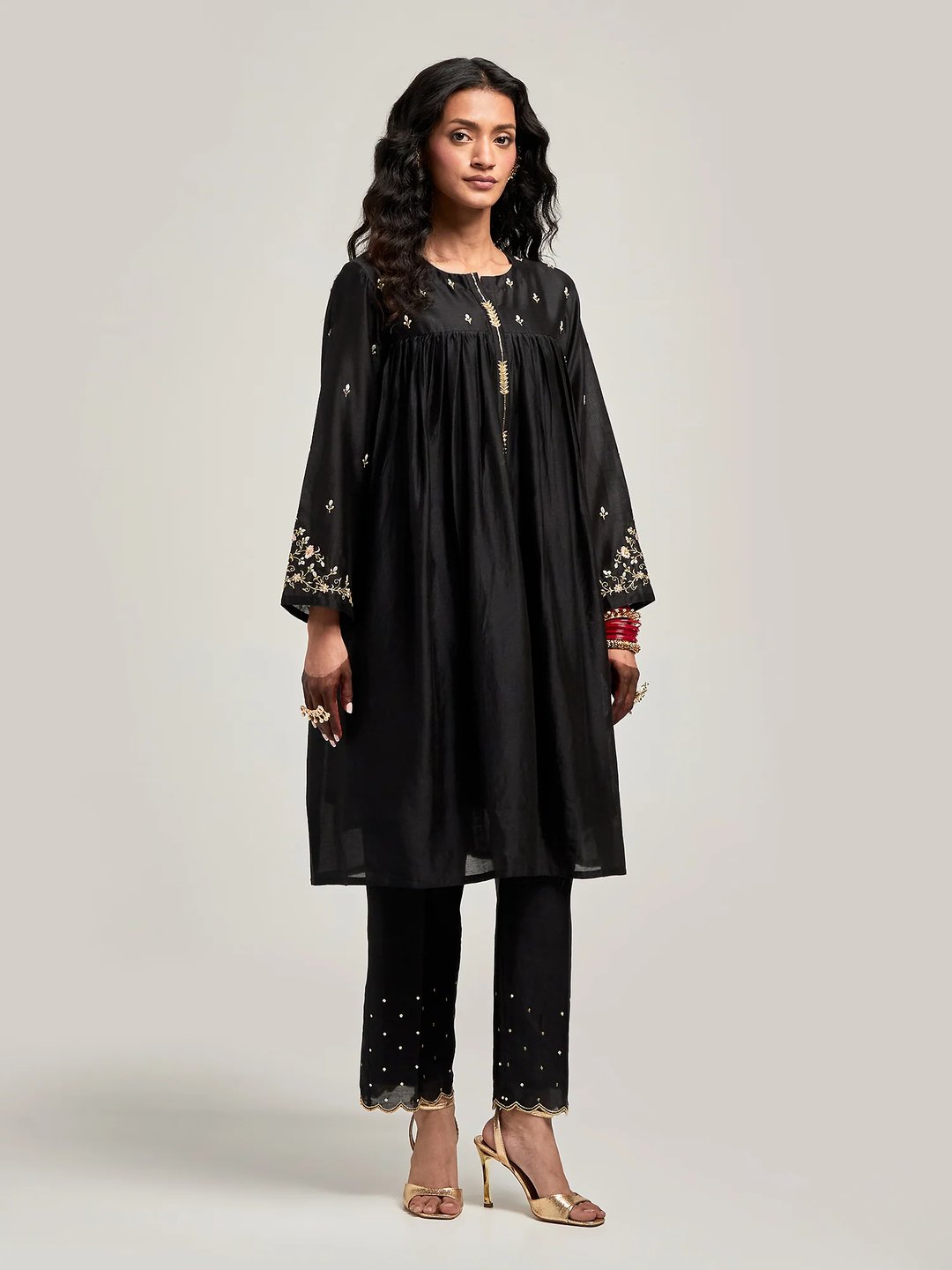 Short Embroidered Yoke Kurta with Gathers and Pant
