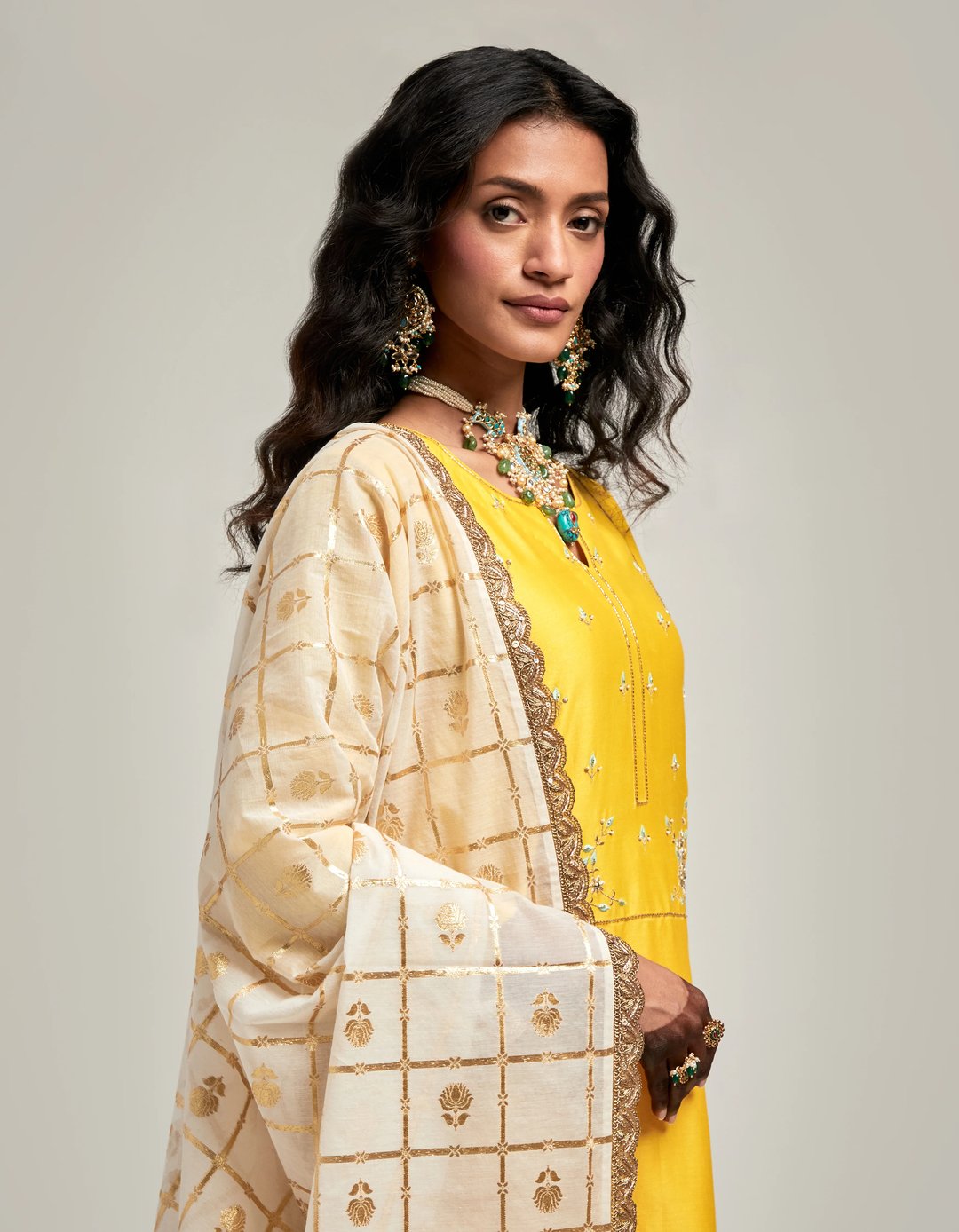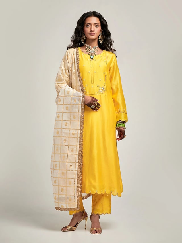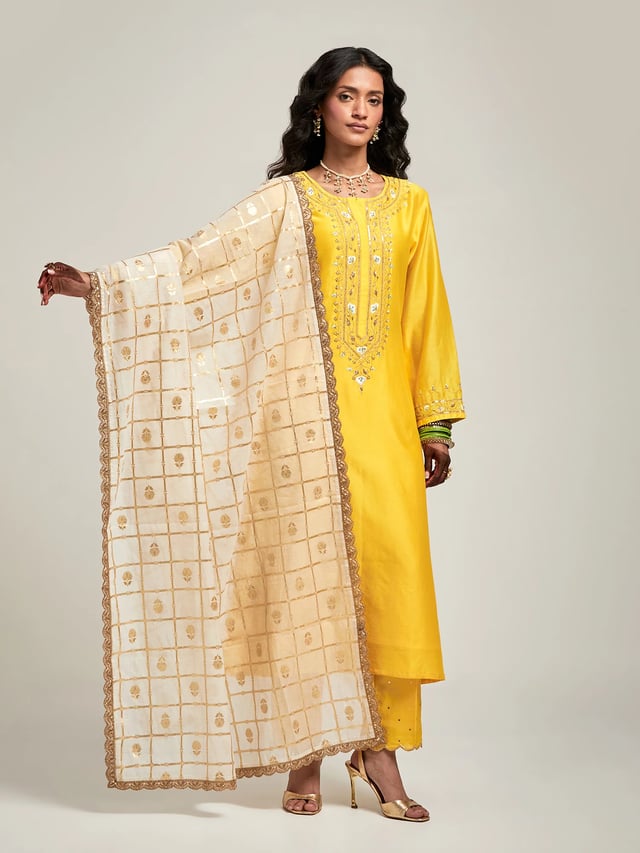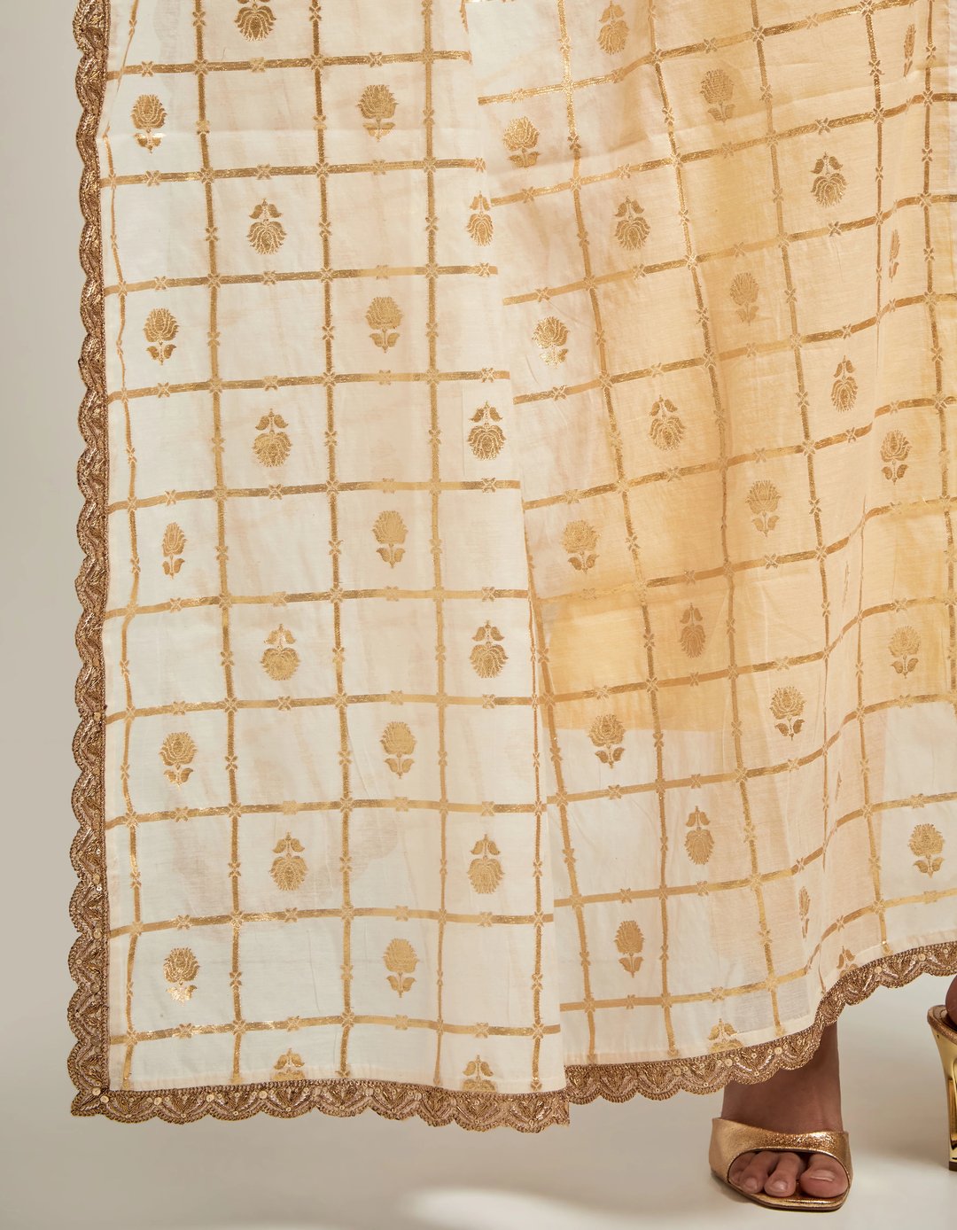 Zari Motifs Dupatta with Lace