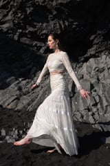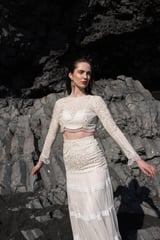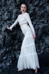 White On White Embroidered Flared Tulle Skirt
