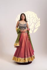 Tri-Colour Tissue Chanderi Lehenga Set with Gotta Border