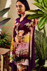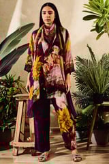 Viscose Crepe Print Floral Mandarin Shirt And Pant Set