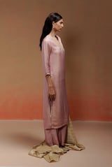 Pink Geometric Jacquard Kurta Set with Ivory Dupatta
