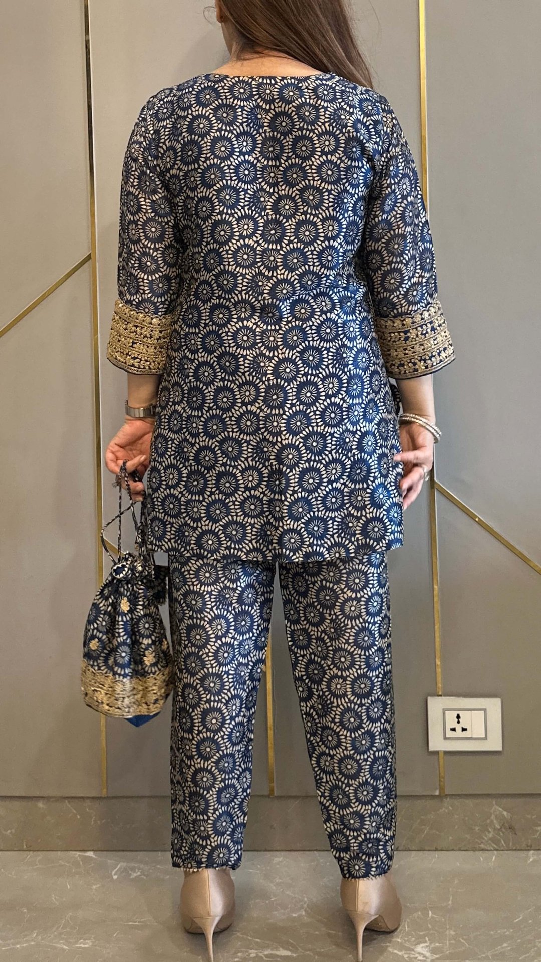 Blue Ajrakh Silk Embrdoiered Co-Ord