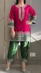 Magenta Chanderi Straight Phiran Kurta with Farshi Salwar