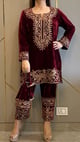 Maroon Velvet Haniya Hand Embroidered Co-Ord