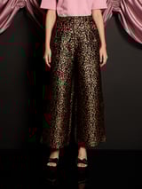 Brown Leopard Jacquard Wide-Leg Trousers