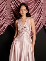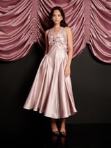 Pale Pink Taffeta Fit and Flare Midi Dress with Rosette